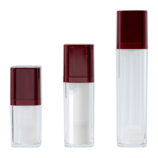 Gran oferta, botellas de base acrílica de 15ml, 30ml, 50ml, rotación cuadrada, giro sin aire con bomba, pulverizador, loción, embalaje de suero